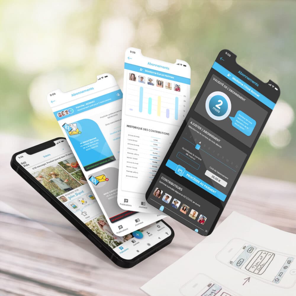 Maquettage de pages pour application mobile et déclinaison desktop. Objectif : gagner en clarté et améliorer l’esthétique.