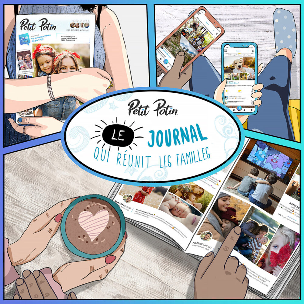 Motion design pour la société strasbourgeoise Petit Potin. Objectif : faire comprendre en mois d’une minute le concept de journal familial et son application dédiée.