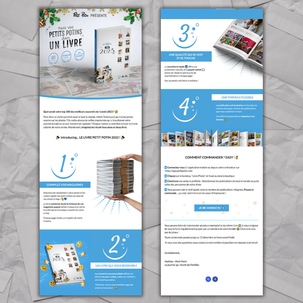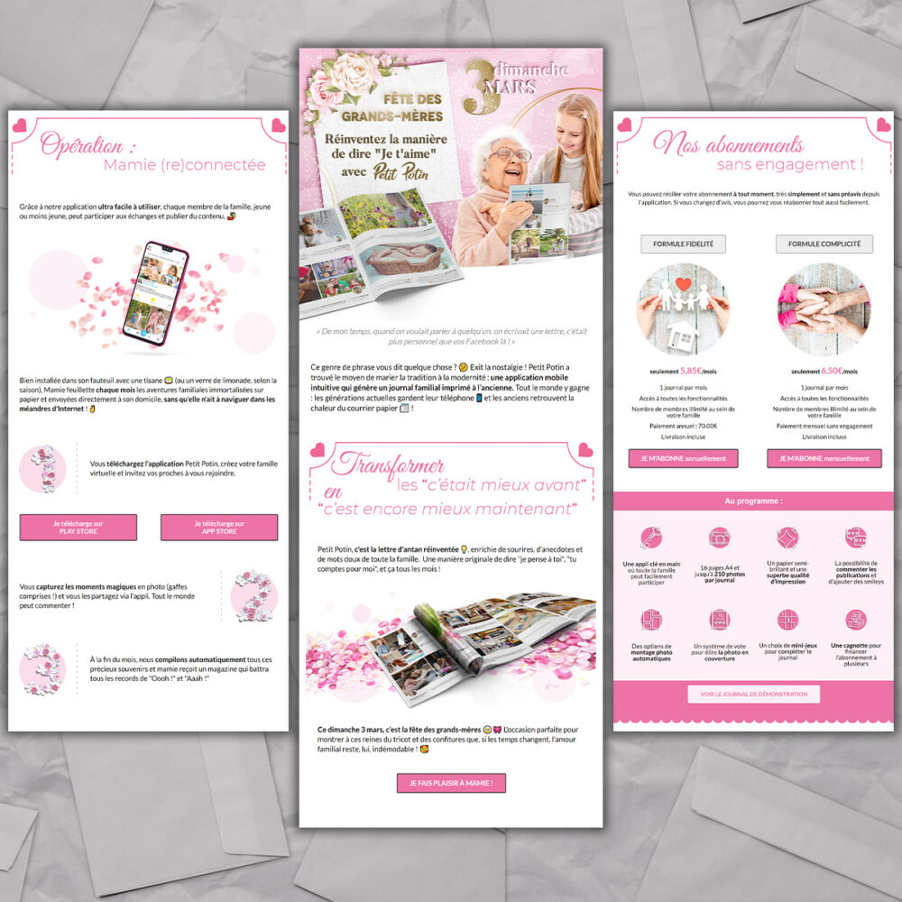Emailings. Supervision des shooting photo, rédaction des textes, création des visuels, mise en page.